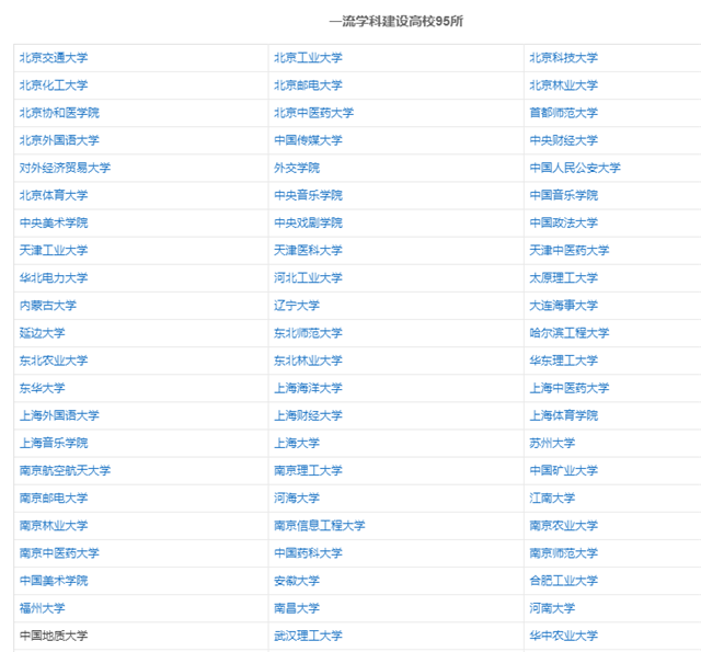 一流學科建設高校95如下