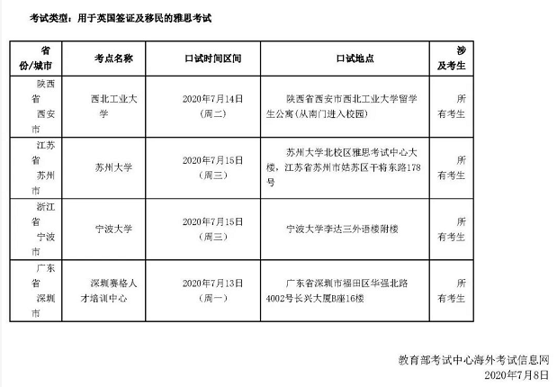 雅思官方正式發(fā)布了7月11日和12日紙筆考試對應(yīng)的口語考試日期安排