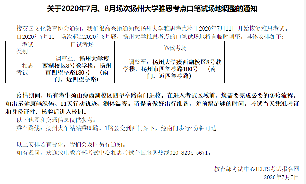 揚州大學(xué)考點宣布更換口筆試場地,新考點地址在:揚州大學(xué)瘦西湖校區(qū)8號教學(xué)樓(揚州市四望亭路180號)