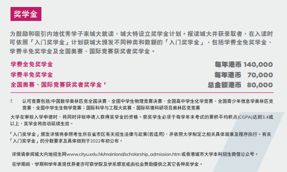 獎學金金額:入學獎學金+大學推薦赴海外頂尖院校交換學習+最高額度可達港幣20萬的海外交流獎學金。