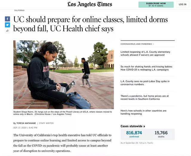 加州大學(xué):可能整個(gè)學(xué)年都上網(wǎng)課