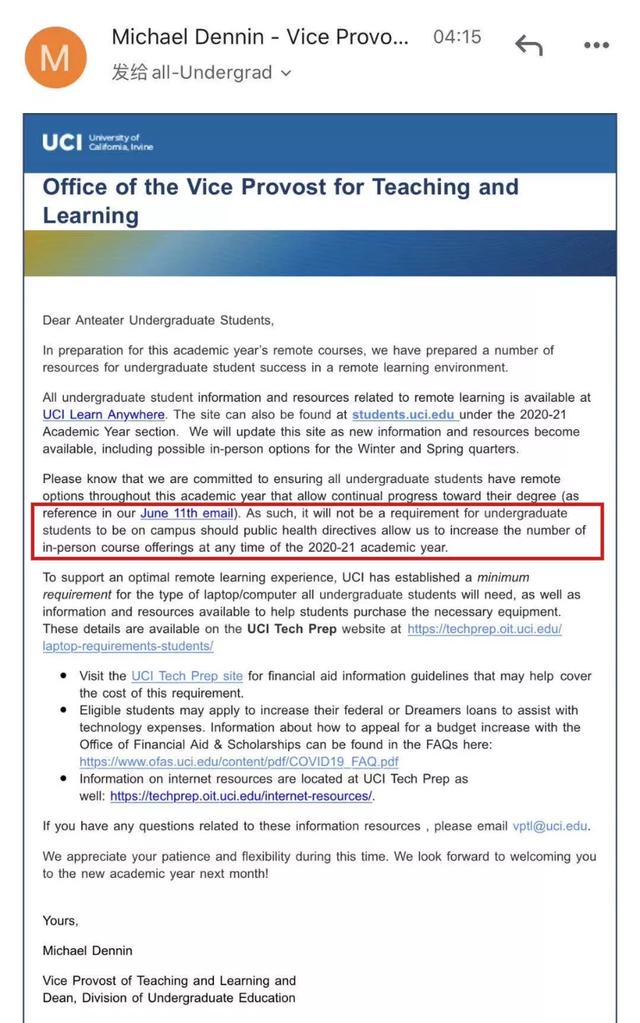 在線上開學(xué)可能已經(jīng)成為了加州大學(xué)系統(tǒng)內(nèi)的“共識(shí)”。8月上旬的時(shí)候,加州大學(xué)爾灣分校就給同學(xué)們發(fā)郵件表示學(xué)校可能會(huì)提供全年上網(wǎng)課的選擇。