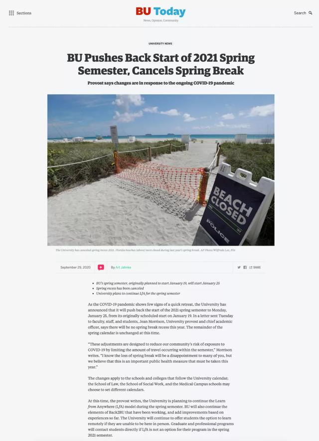 幾乎在相同時(shí)間,波士頓大學(xué)也宣布了春季繼續(xù)提供線上授課的消息。對(duì)于遠(yuǎn)程教學(xué),波士頓大學(xué)稱之為L(zhǎng)earn from Anywhere (LfA)。