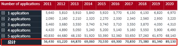 或許這看起來還是有些抽象,我們對比來看,這個數(shù)字是2016年的2倍,而北愛爾蘭和威爾士申請人數(shù)才1.8萬與2.1萬人。