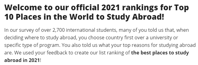 根據官方數據,網站針對數千名留學生進行了調研。
