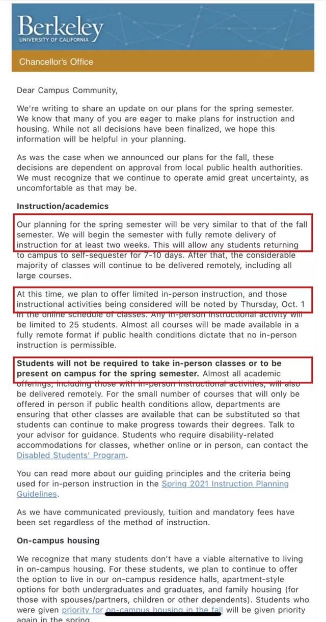 今年的留學(xué)生不容易,“云留學(xué)”成了這大半年來的常態(tài)。加州大學(xué)伯克利分校就給每一位學(xué)生都發(fā)了封郵件,通知下學(xué)期大家仍然需要呆在家中保持云留學(xué)……