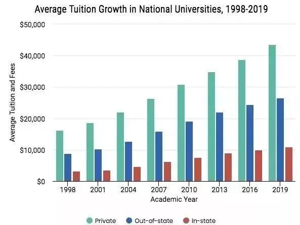 根據OECD統計,美國公立大學每年的平均學費高達8,202美元,無論與哪個國家對比,美國的公立大學學費都要高出不少。而美國私立大學的學費,比公立大學更“天價”,美國私立大學平均學費約