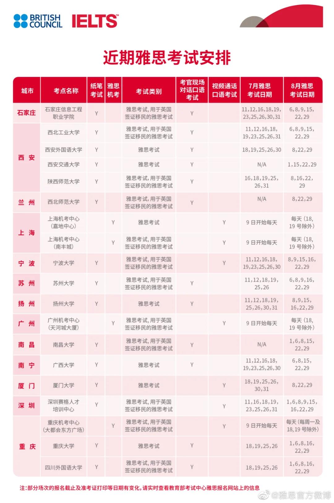 雅思官方發近期布8月份機考、口試安排!