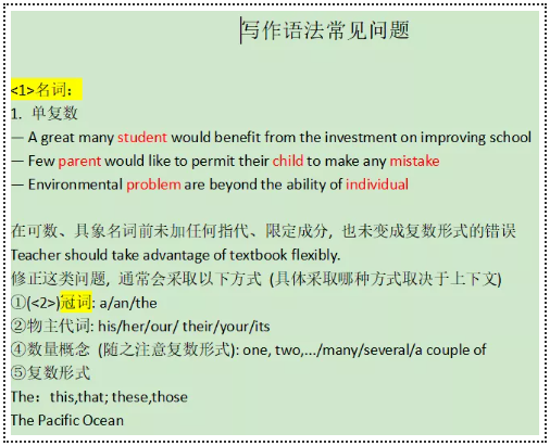 這篇文章雖然思路、邏輯都還不錯,但是看到這樣密密麻麻的語法錯誤,很遺憾考官的評分也不會很漂亮。那么這個非常時期,孩子們首要的一定是分析清楚自己語言表達的錯誤點都有哪些,然后根據這些點跟著老師把它一點點糾正過來。