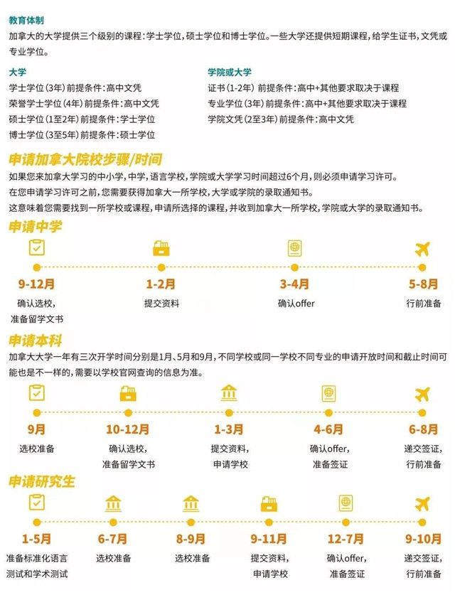 在加拿大學習的可能性是無限的。這里提供交流計劃, 語言學校, 學院, 大學, 研究生, 專業證書和遠程教育等,滿足多方面的教育需求。基本申請步驟及時間如下: