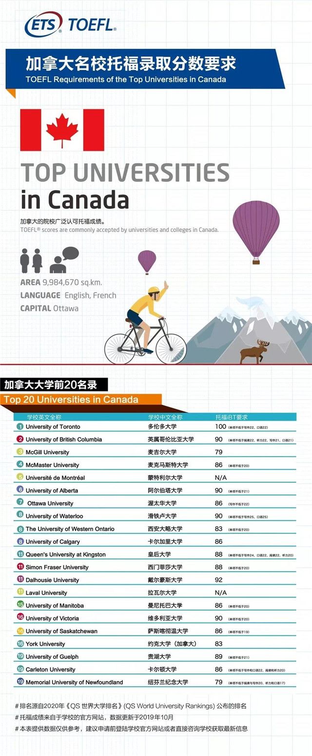 在確定留學目的地后,也需要進一步確定參與的語言考試。(托福君悄悄說:托福考試被全球 150 多個國家超過 10000 所綜合性大學、機構和其他學院認可。加拿大自然也在這里面咯~)