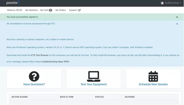 你會收到一封主題為【Temporary Login Information】的郵件,包含用戶名密碼,使用這些信息登陸 proctor u 網站。
